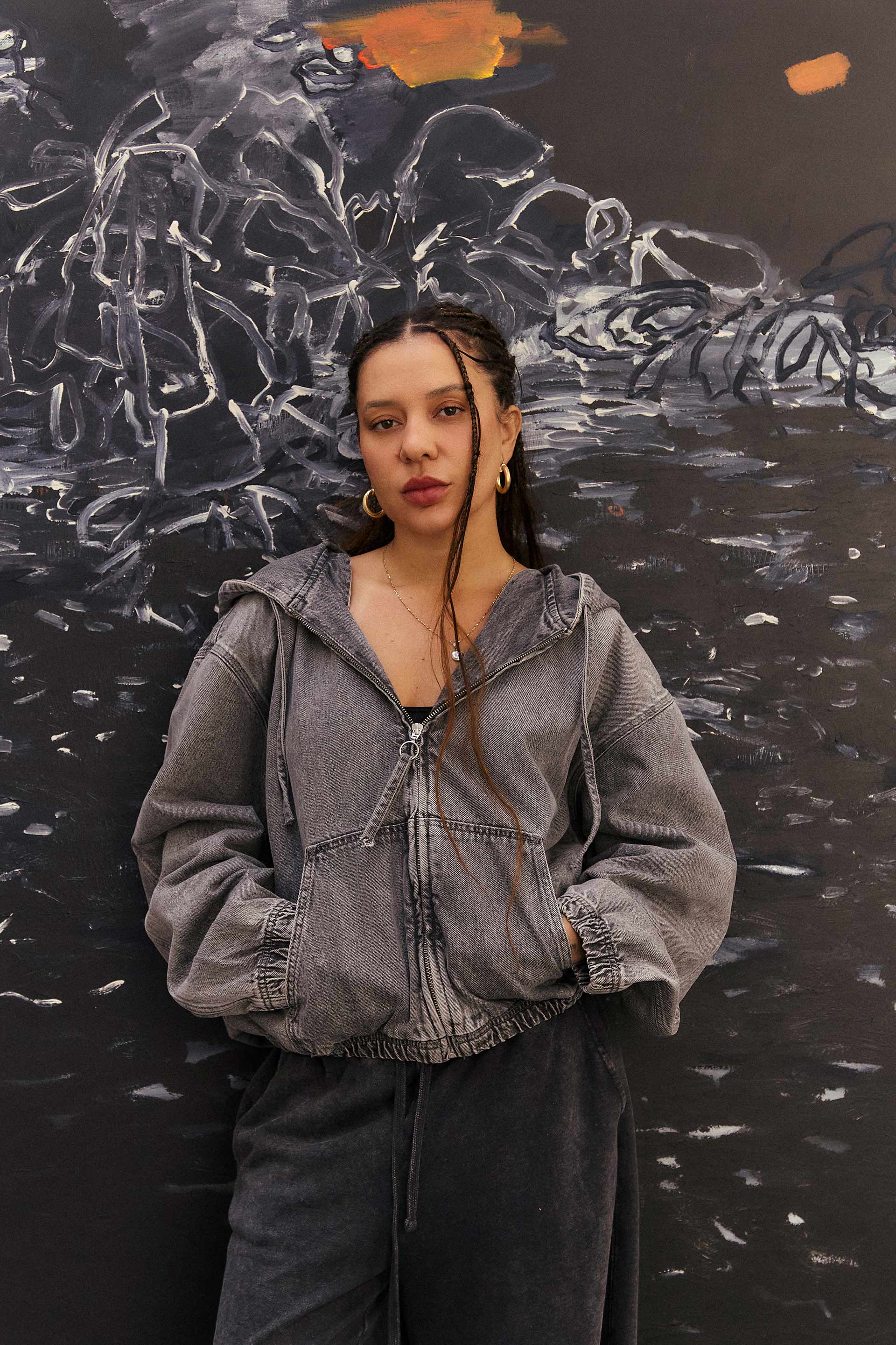 Born and raised in Rio de Janeiro, self-trained artist Laís Amaral began her artistic journey with the 2017 cofounding of Trovoa, a collective in Niterói, Brazil. The group, known for hands-on artistic practices, experimented with various mediums and discussed race, gender and social issues, reflecting their experiences as racialized women in Brazilian society. Identifying as an “artist-artisan” a term influenced by her family background and experiences with Trovoa, Amaral currently focuses on painting. Her work explores themes of contemporary environmental collapse, particularly desertification and the phenomenon of “whitening” in Brazilian territories. She draws parallels between these landscapes and the internal struggles of individuals facing social and economic challenges.